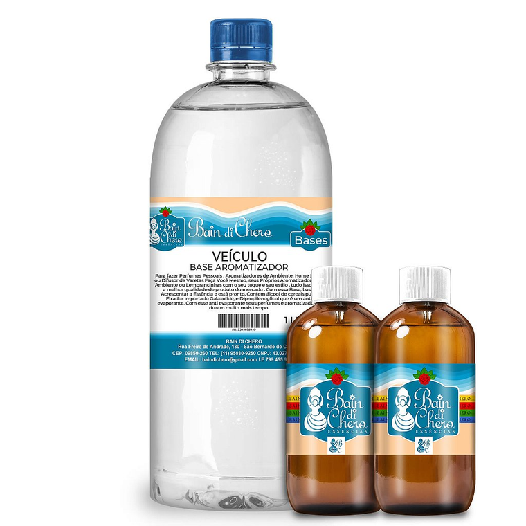 Kit Base Veículo Essências 100ml – Crie Aromas Incríveis Faça seus próprios aromatizadores com o Kit Base Veículo Essências 100ml ! Prático e versátil, este kit traz tudo que você precisa para criar difusores, home sprays e muito mais, com aromas personalizados que duram! Por que Escolher Este Kit? Praticidade : Combinação pronta para suas criações. Versatilidade : Ideal para difusores, perfumes e lembrancinhas. Longa Duração : Base com agentes anti-evaporantes. Personalização : Escolha suas essências favoritas. O Que Vem no Kit? 1x Base Pronta Veículo 1L Composição especial para aromatizadores com fixação prolongada. Essências Hidrossolúveis 100ml Escolha entre 2, 3 ou 5 unidades de aromas do catálogo. Como Usar? Misture 100ml de essência a cada 300ml de base veículo. Deixe macerar: 3 dias fechado no congelador. 6 horas aberto em local seco, sem luz solar ou calor. Seu aromatizador estará pronto com um aroma intenso e duradouro! Indicações de Uso Difusores de Ambiente Aromatizadores de Vareta Perfumaria Fina Home Sprays Águas de Lençol Cheirinhos para Carro Precauções Uso externo apenas – não ingerir . Teste antes de usar em velas para verificar transparência e fixação. Pode haver coloração amarela após maceração (sem alterar a qualidade). Armazene em local seco, fresco (15-30C), longe da luz solar. Use luvas ao manusear e suspenda o uso se houver irritação. Mantenha fora do alcance de crianças e animais.