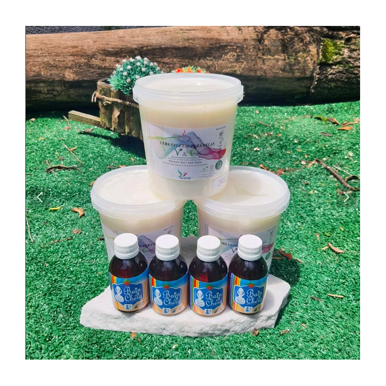 Esse Kit é perfeito para quem ama praticidade e perfume em suas velas. A Cera de Palma Vegetal para velas V&G é um produto Vegano excelente devido a sua fórmula de cristalização rápida, estabilidade, e desempenho.