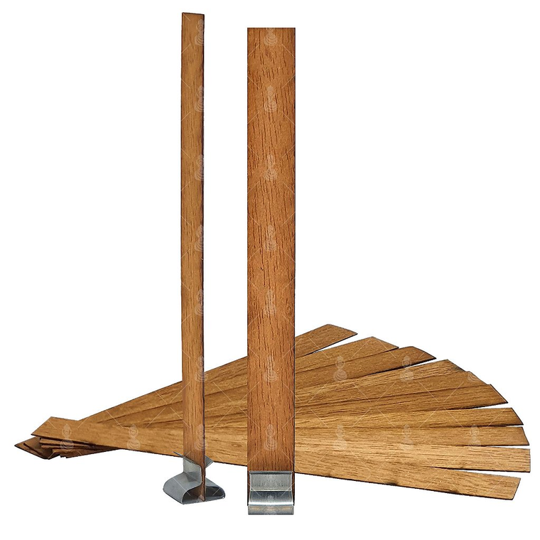 Pavio de madeira com sustentador de metal para velas. Queima uniforme, som crepitante e design ecológico para um toque acolhedor!