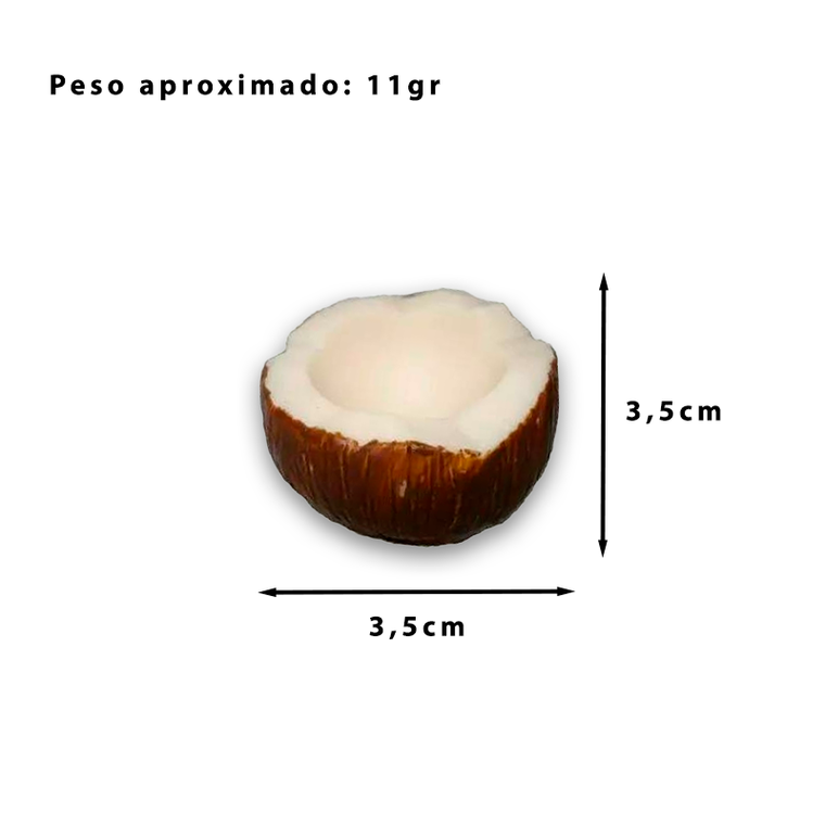 Molde de Silicone Coquinho Mini – Toque Tropical Crie peças adoráveis com o Molde de Silicone Coquinho Mini ! Perfeito para sabonetes, velas e resina, este molde reproduz um coco em miniatura com detalhes realistas, trazendo frescor ao seu artesanato! Por que Escolher Este Molde? Design Realista : Coquinho mini com detalhes naturais e precisos. Versatilidade : Ideal para sabonetes, velas, gesso, resina e mais. Qualidade Superior : Silicone flexível e resistente, fácil de desmoldar. Charme Exótico : Adiciona um toque tropical às suas criações. Características da Peça Final Medidas Aproximadas : 3,5 cm (Largura) x 3,5 cm (Altura) x 2,5 cm (Profundidade) Peso Aproximado (Base Glicerina) : 11g Aplicações Criativas Sabonetes Artesanais : Produza mini sabonetes com essências tropicais. Velas Decorativas : Crie velas fofas para decoração ou lembrancinhas. Resina e Gesso : Faça pingentes, enfeites ou detalhes com vibe praiana. Lembrancinhas : Ideal para festas temáticas ou kits personalizados. Como Usar? Despeje o material no molde, deixe solidificar ou secar, e desmolde para revelar um coquinho perfeito! Detalhes do Molde Material : Silicone bi-componente (borracha catalisador), elástico e durável. Qualidade : Suporta até 150C e reproduz detalhes com precisão. Atenção : Não indicado para uso alimentício devido a possíveis contaminações. Cuidados com o Molde Desmoldagem : Faça um corte lateral com estilete, se necessário, e use um elástico para fechar. Armazenamento : Guarde em local arejado, sem variações bruscas de temperatura. Precaução : Evite peso sobre o molde e não use em forno. Limpeza : Lave com água morna e deixe secar naturalmente.