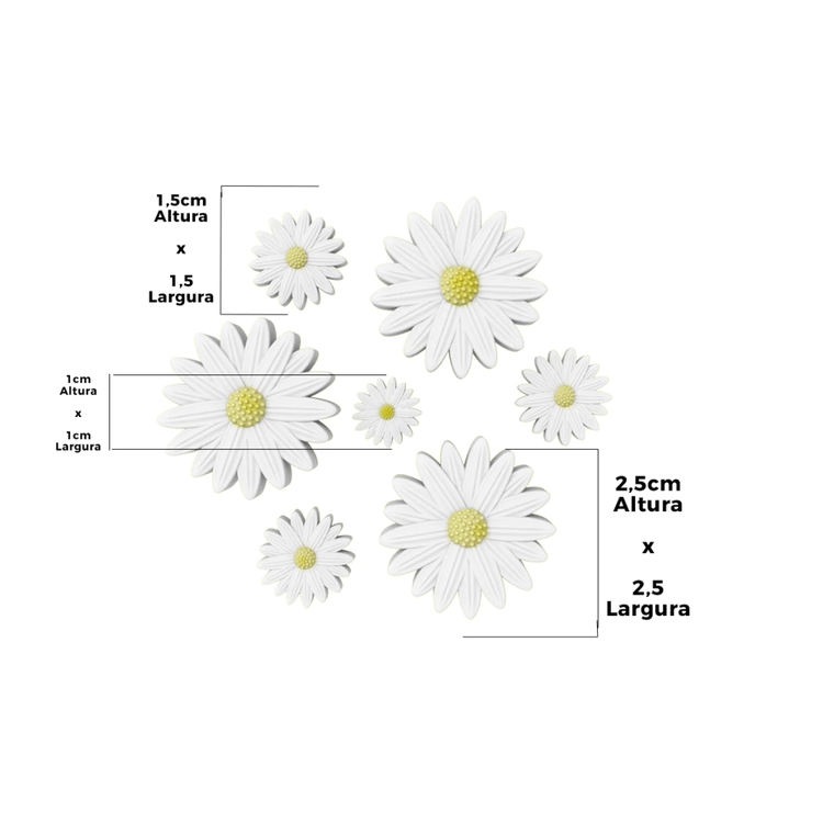 Molde de silicone Mini Margarida, 7 cavidades (1 a 2,5cm), 65g. Ideal para resina, gesso e sabonetes com toque floral!