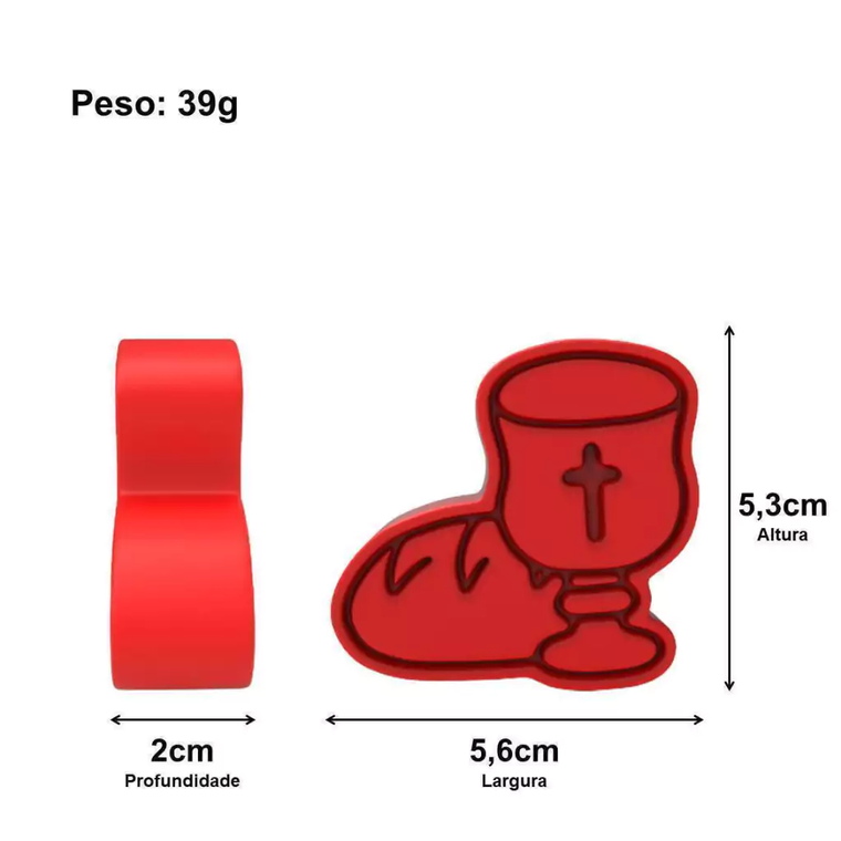 Molde de silicone Pão e Taça de Vinho, 5,6x5,3x2cm, 39g. Ideal para sabonetes, velas e resina com tema Santa Ceia!
