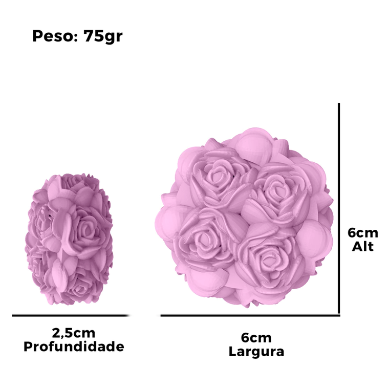 Forma de Silicone Provence Rosas – Elegância Floral Crie peças sofisticadas com a Forma de Silicone Provence Rosas ! Inspirada no estilo provençal, ela traz o charme das rosas para sabonetes, velas e resina, adicionando romantismo e requinte ao seu artesanato! Por que Escolher Esta Forma? Design Clássico : Detalhes realistas de rosas com toque provençal. Versatilidade : Perfeita para sabonetes, velas, gesso, resina e mais. Qualidade Premium : Silicone flexível e durável, com desmoldagem fácil. Sofisticação : Ideal para criações delicadas e elegantes. Características da Peça Final Medidas Aproximadas : 6 cm (Largura) x 6 cm (Altura) x 2,5 cm (Profundidade) Peso Aproximado (Base Glicerina) : 75g Aplicações Criativas Velas Decorativas : Crie velas aromáticas com estilo romântico para ambientes acolhedores. Sabonetes Artesanais : Produza sabonetes finos, perfeitos para presentes ou kits de banho. Gesso e Resina : Faça apliques para caixas, molduras ou decorações personalizadas. Lembrancinhas : Ideal para casamentos, chás de bebê e eventos especiais. Embalagens : Enfeite potes e caixas com rosas detalhadas. Como Usar? Despeje o material na forma, deixe solidificar ou secar, e desmolde para revelar o acabamento floral impecável! Detalhes do Molde Material : Silicone bi-componente (borracha catalisador), elástico e resistente. Qualidade : Suporta até 150C e reproduz detalhes com precisão. Atenção : Não indicado para uso alimentício devido a possíveis contaminações. Cuidados com o Molde Desmoldagem : Faça um corte lateral com estilete, se necessário, e use um elástico para fechar. Armazenamento : Guarde em local arejado, sem variações bruscas de temperatura. Precaução : Evite peso sobre o molde e não use em forno. Limpeza : Lave com água morna e deixe secar naturalmente.