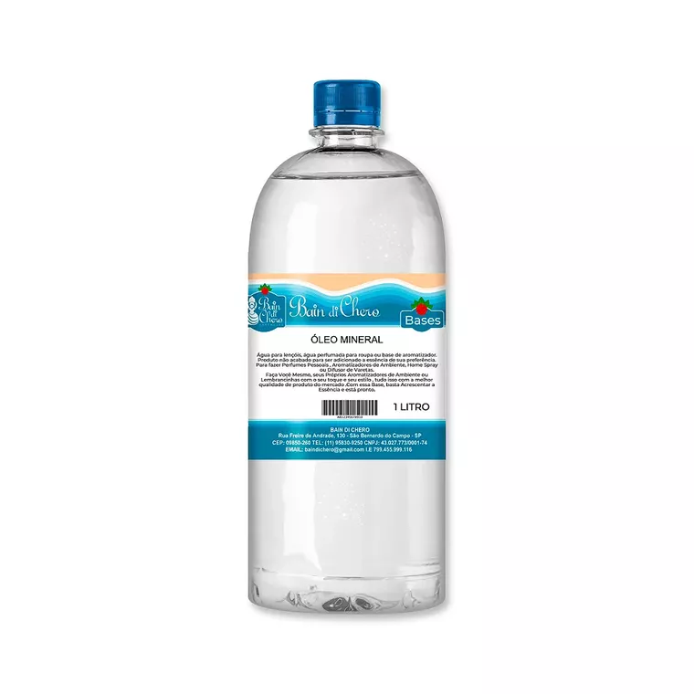 Óleo Mineral 1 Litro O óleo mineral possui propriedades hidratantes muito benéficas à pele, ideal para hidratar a pele ressecada, possui também propriedades demaquilantes, proporcionam brilho e suavidade para o cabelo. Pode ser usado em cremes hidratantes, produtos capilares, e diversos outros. BENEFÍCIOS -Hidratante -Demaquilante -Benéfico a pele INDICAÇÕES DE USO -Cremes Hidratantes -Produtos Capilares CONTÉM 1 LITRO